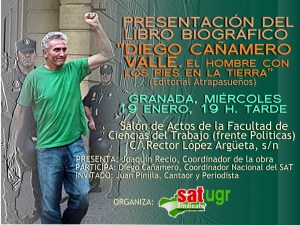 Este miércoles se presentará en Granada la biografía del coordinador nacional del Sindicato Andaluz de Trabajadores/as Diego Cañamero.  La presentación contará con la participación del propio Diego Cañamero, del coordinador de la obra Joaquín Recio, y también asistirá el cantaor granadino y miembro del SAT Juan Pinilla.