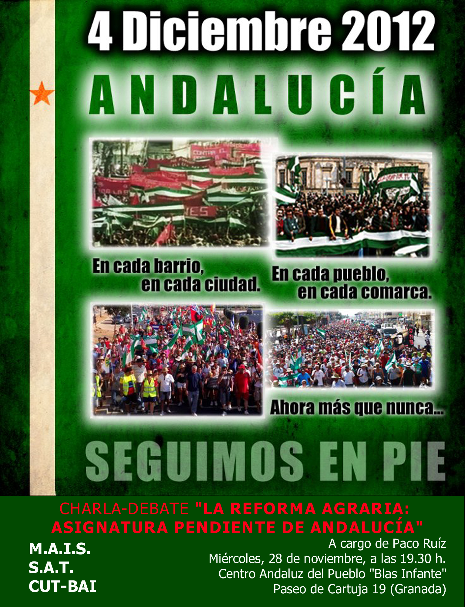 Charla: Reforma agraria una asignatura pendiente de Andalucía. Miercoles 28 a las 19-30 en el CAP «Blas Infante», paseo de cartuja n19.