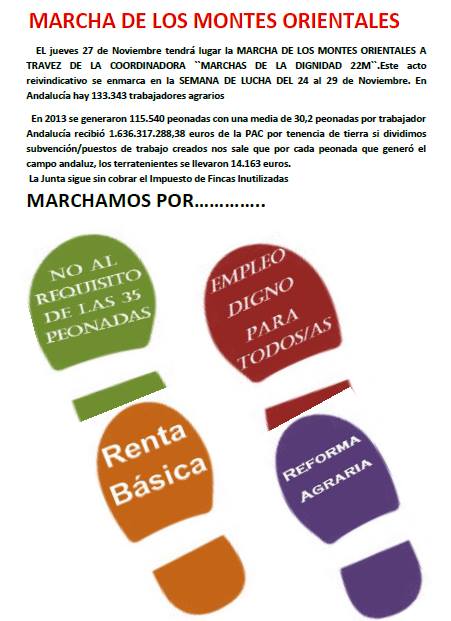 El jueves 27 de Noviembre la marcha de los montes saldrá desde Deifontes a las 10 horas y terminara en Piñar pasando por Iznalloz, es muy importante tu participación jornalero/a, porque marchamos.