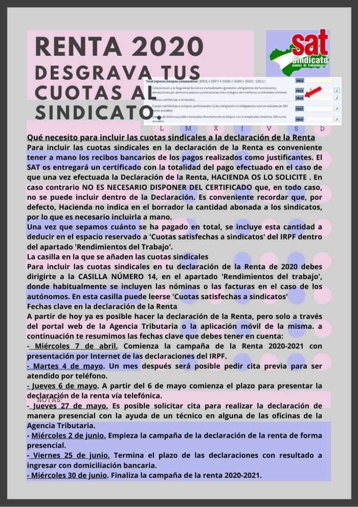 RENTA 2020: Desgrava tus cotizaciones del sindicato.