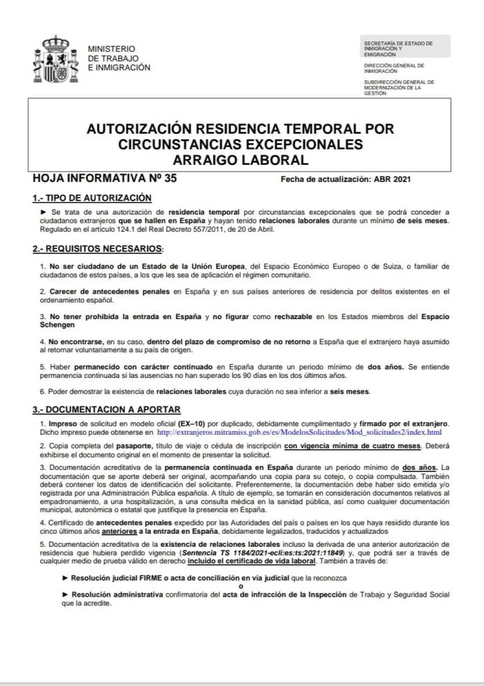 Recientemente hemos conocido la STS 1184/2021 de 25/03/2021 del Tribunal Supremo. Sala de lo Contencioso en la que ha sido ponente Dª Angeles Huet De Sande, en la que se fija doctrina de como el arraigo laboral puede ser acreditado.