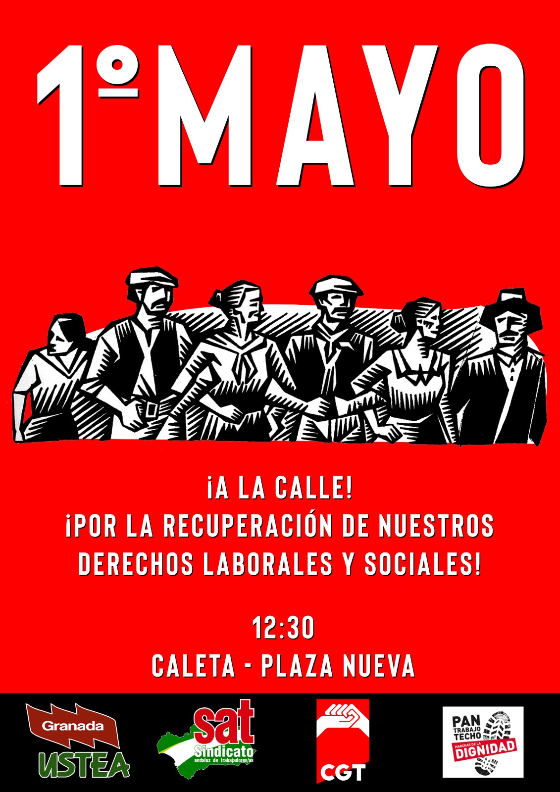 Otro año más con motivo del 1º de Mayo, los sindicatos de clase combativos CGT, SAT y USTEA aunamos nuestras fuerzas y salimos a la calle en defensa de los derechos de los trabajadores y trabajadoras, poniendo en el centro de la movilización reivindicaciones como la derogación de las reformas laborales, de la ley mordaza, por las pensiones públicas, por la reducción de la edad jubilación, por una vivienda y por unos servicios públicos dignos, por la reducción del tiempo de trabajo sin rebaja salarial, por la igualdad salarial entre hombres y mujeres, …