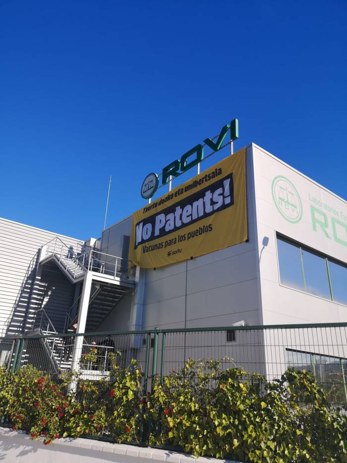 El pasado sábado 15 de mayo, militantes de SORTU descolgaban una pancarta en Granada desde la azotea de la empresa farmacéutica LAB0RATORIOS ROVI, exigiendo «vacunas para todos» y exigiendo la liberalización de las patentes dentro de la campaña desarrollada por esta organización vasca, .