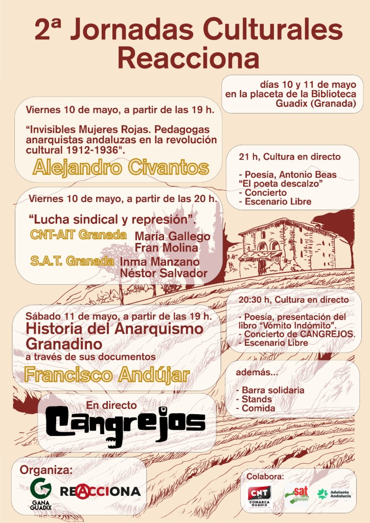 Este viernes en #Guadix participando en las jornadas organizadas por la candidatura municipalista Gana Guadix y el Colectivo ReaccionA hablando sobre sindicalismo y represión.