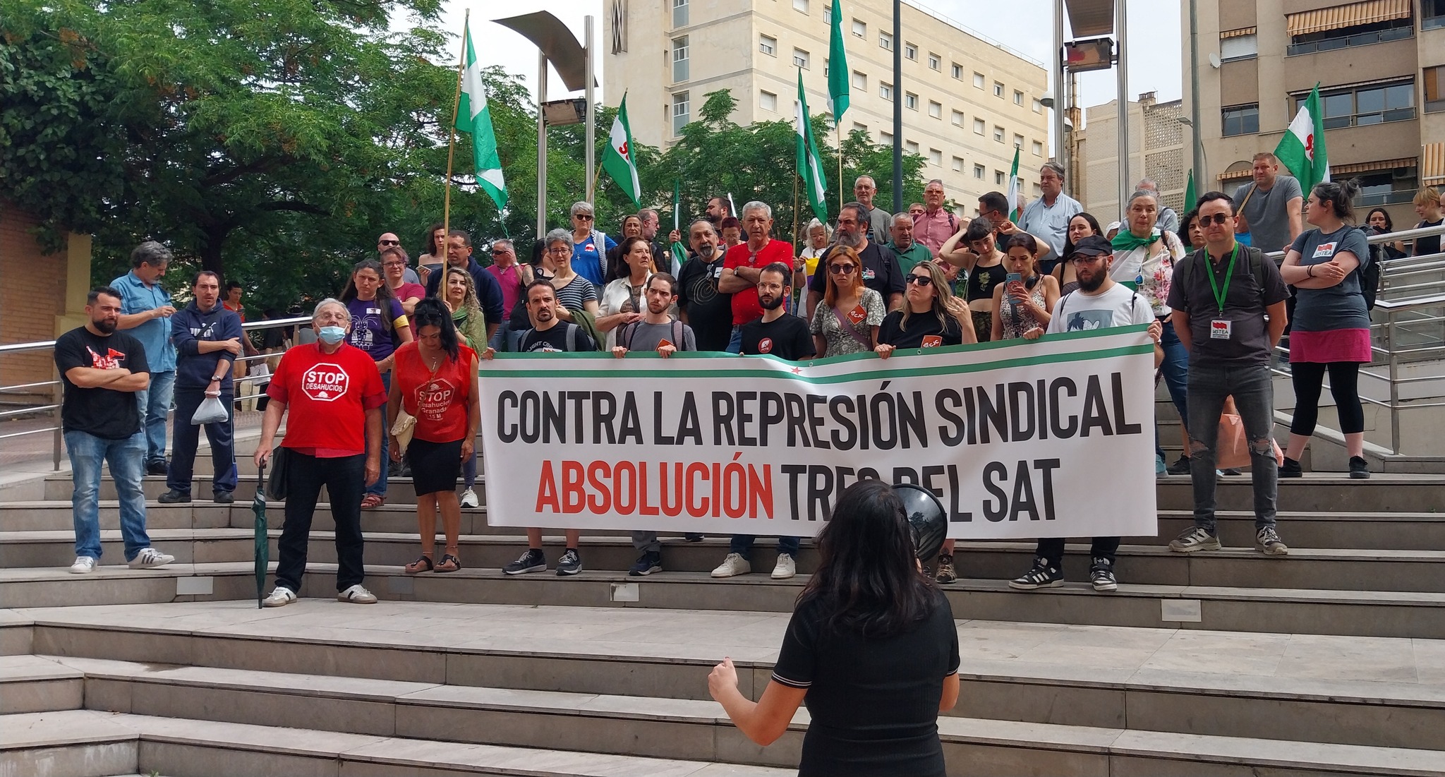 La Junta de Andalucía pide 5 años de cárcel a nuestros compañeros María José, Vanesa y Néstor por una acción sindical, llamamos a los sindicatos, partidos y movimientos sociales de #Granada apoyarnos para combatir juntas la represión.