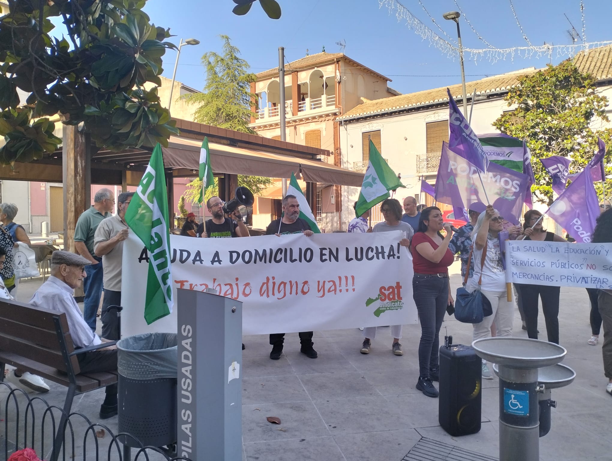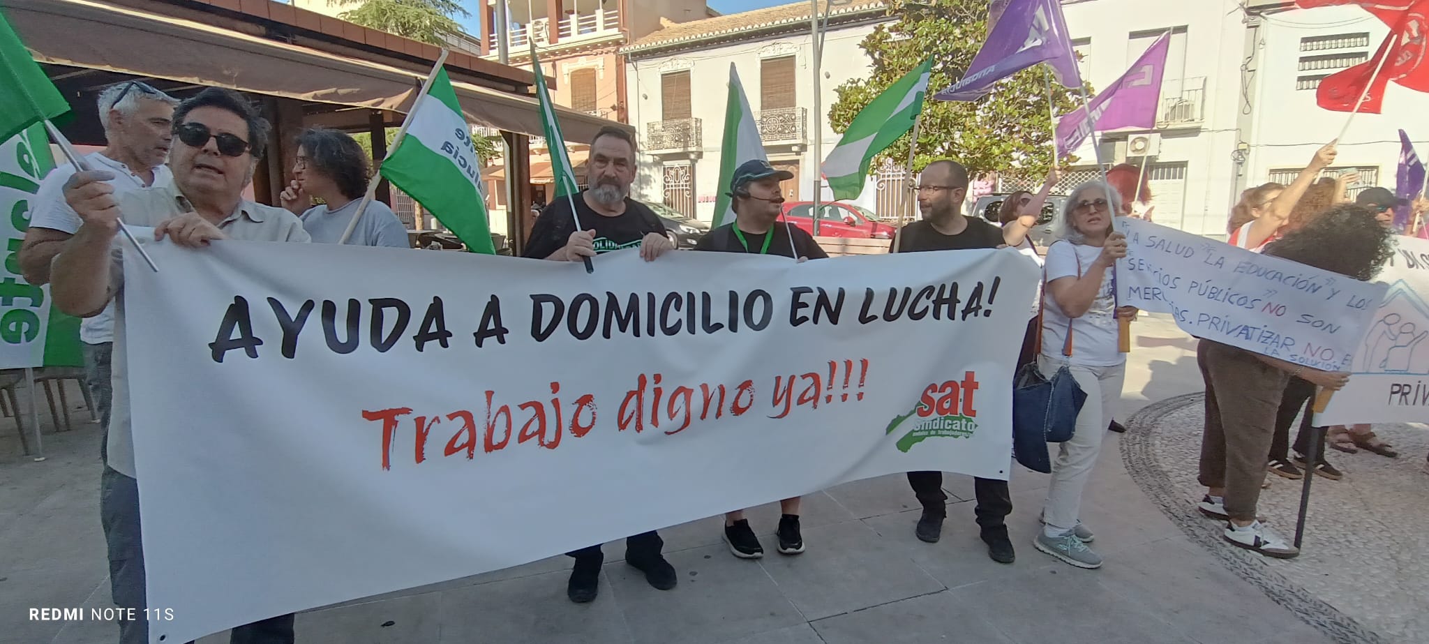 Las trabajadoras/es de Atarfe recibieron un mensaje de apoyo por parte de las trabajadoras/es de la Ayuda a domicilio de Santa Fe, que recientemente han sufrido el proceso de privatización, y las advirtieron de que no se dejaran engañar por los sindicatos de la patronal y las alentaron a seguir luchando para frenar el proceso. Por último, entre las consignas que se gritaron se podía escuchar: “¡Engaño, traición, no ha la privatización!”, “¡Atarfe no se vende, se defiende!”, “¡La Ayuda a domicilio no es un negocio!”