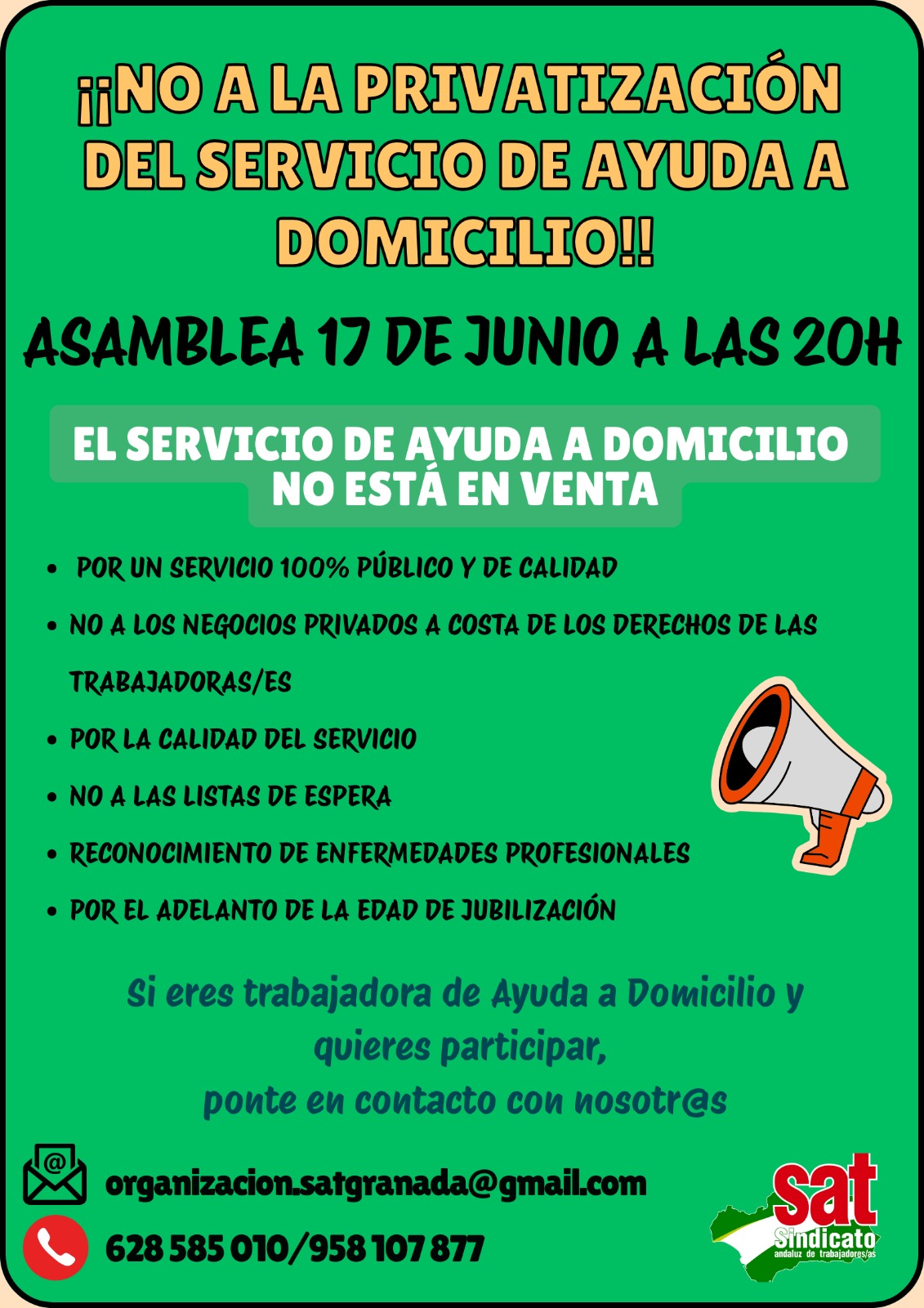 ORGANIZATE CON NOSOTROS Asesoria:628585010 / 958107877 Correo:organizacion.satgranada@gmail.com