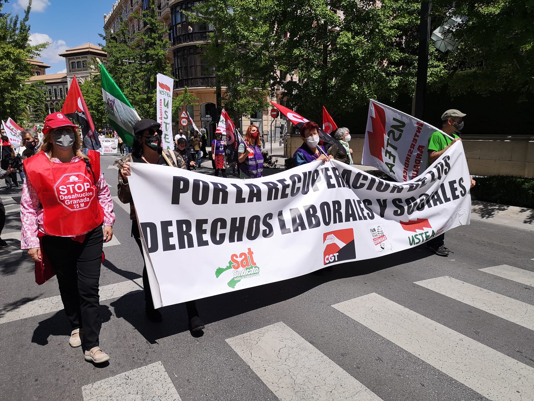 Por todo lo expresado anteriormente y que sólo es un sucinto resumen de nuestras realidades, desde el SAT de Granada ante este Primero de Mayo, día internacional de la Clase Trabajadora, se llamó a la movilización y a la organización. Es imprescindible una clase trabajadora fuerte, organizada y sin miedo. No vamos “ a comprar” el discurso de que “ante la crisis todos estamos juntos”, mientras somos la mayoría quienes perdemos y unos pocos los que se benefician. Es urgente imponer mediante la movilización un programa de urgencia social que responda a las necesidades de los y las trabajadoras y de la juventud. Las políticas de los gobiernos actuales no van en ese sentido y sin partidos y sindicatos genuinamente andaluces y que pongan fin a los desmanes que cada día se cometen sobre los campos ,las ciudades y los y las trabajadoras andaluzas, no tendremos futuro.